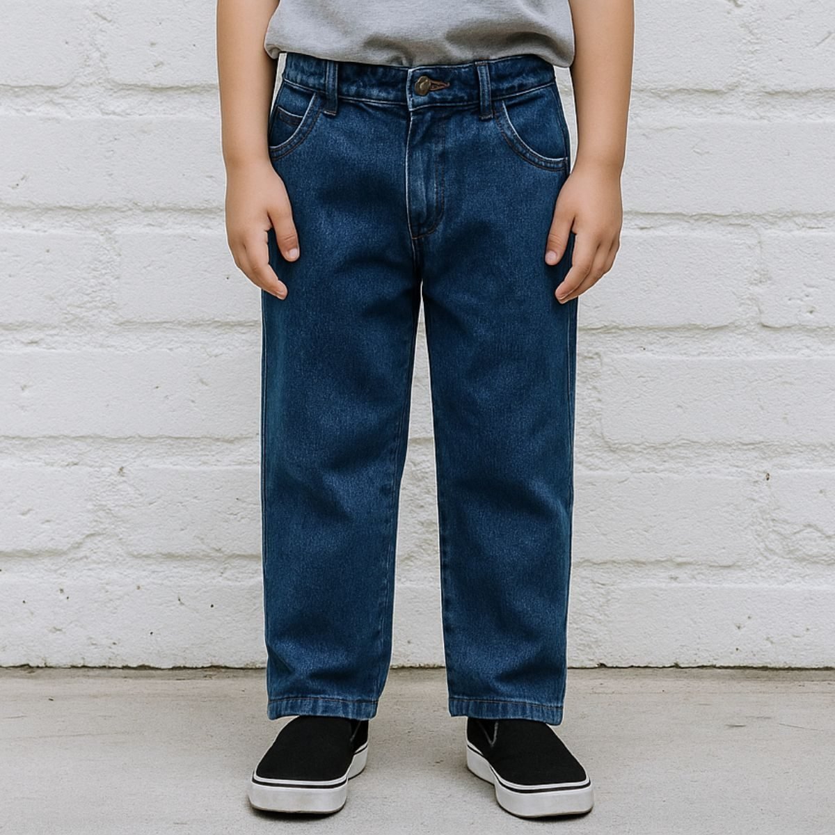 Jean recto azul de niño, clásico y versátil. Confeccionado en denim suave y durable.